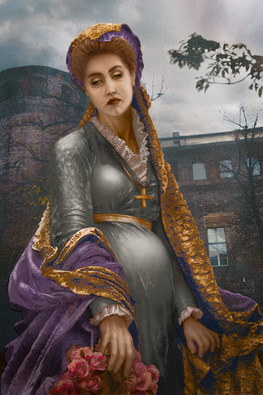 See also my Facebook artist page; you will find lengthier thoughts and views of work in progress there. Use the contact form below or email me with questions, comments, or requests. This work is all from 2014 - 2023. All are archival pigment prints on uncoated BFK Rives paper in editions of 12. Every one of them has a story of her life, of her time.